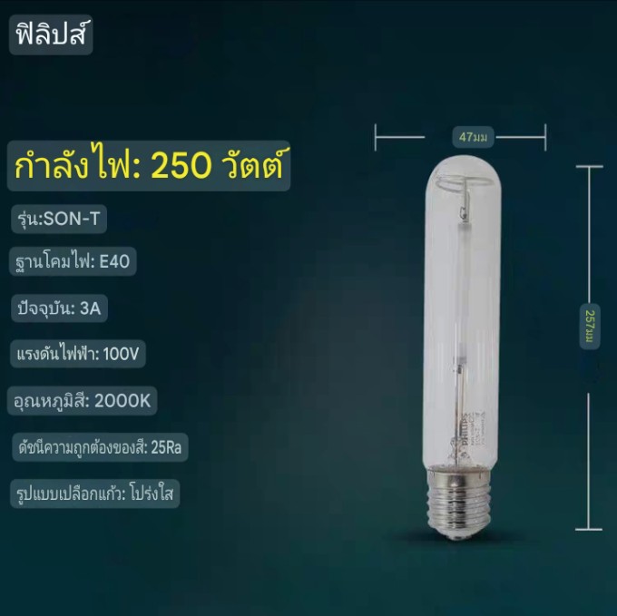 ชื่อผลิตภัณฑ์: หลอดโซเดียมแรงดันสูงของฟิลิปส์ (Philips High-Pressure Sodium Lamp) หรือที่รู้จักกันในชื่อรุ่น SON-T สำหรับชนิดทรงกระบอก